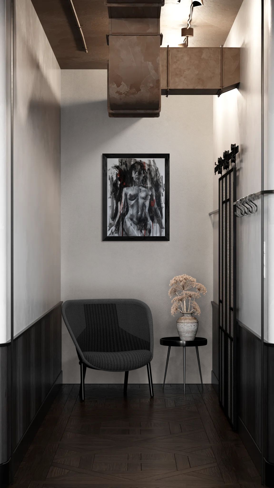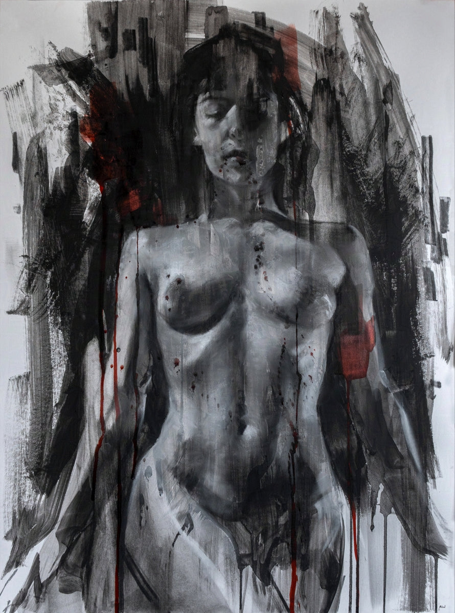 Media: Charcoal, soft pastel and ink on hot-pressed watercolor paper.