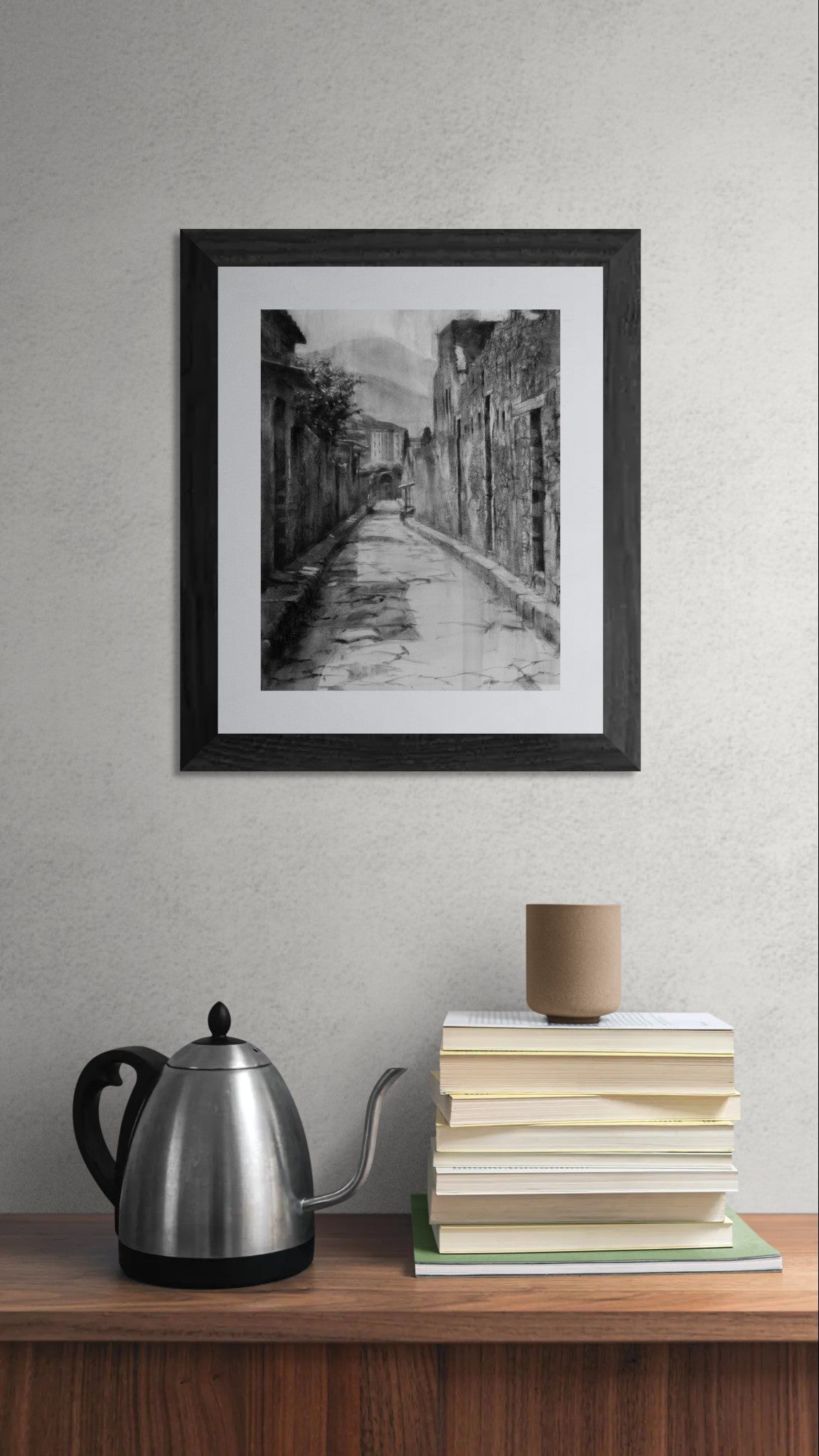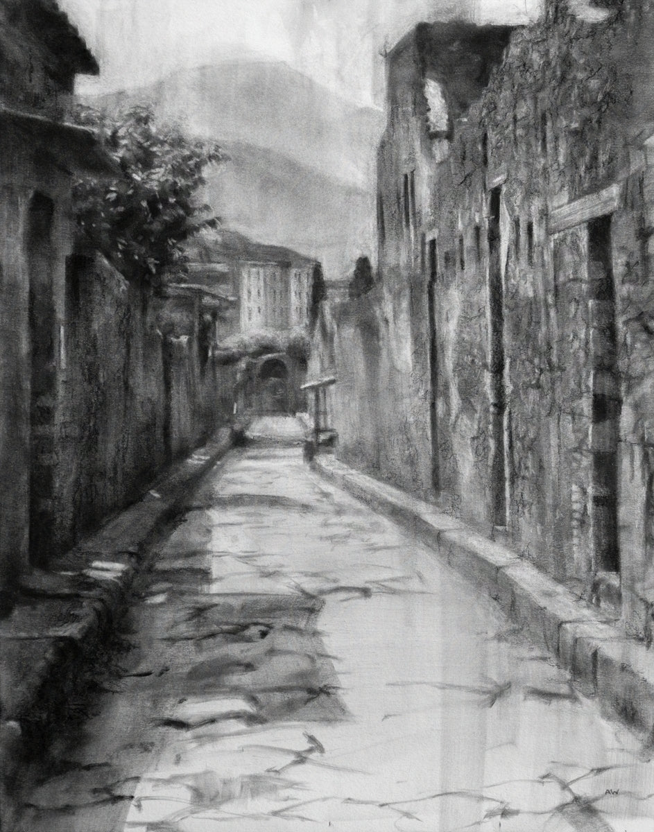 This is a charchoal drawing depicting ruins of Pompeii, Italy. I enjoyed starting with larges abstracts shape to finer details. You can find the process here: PROCESS VIDEO